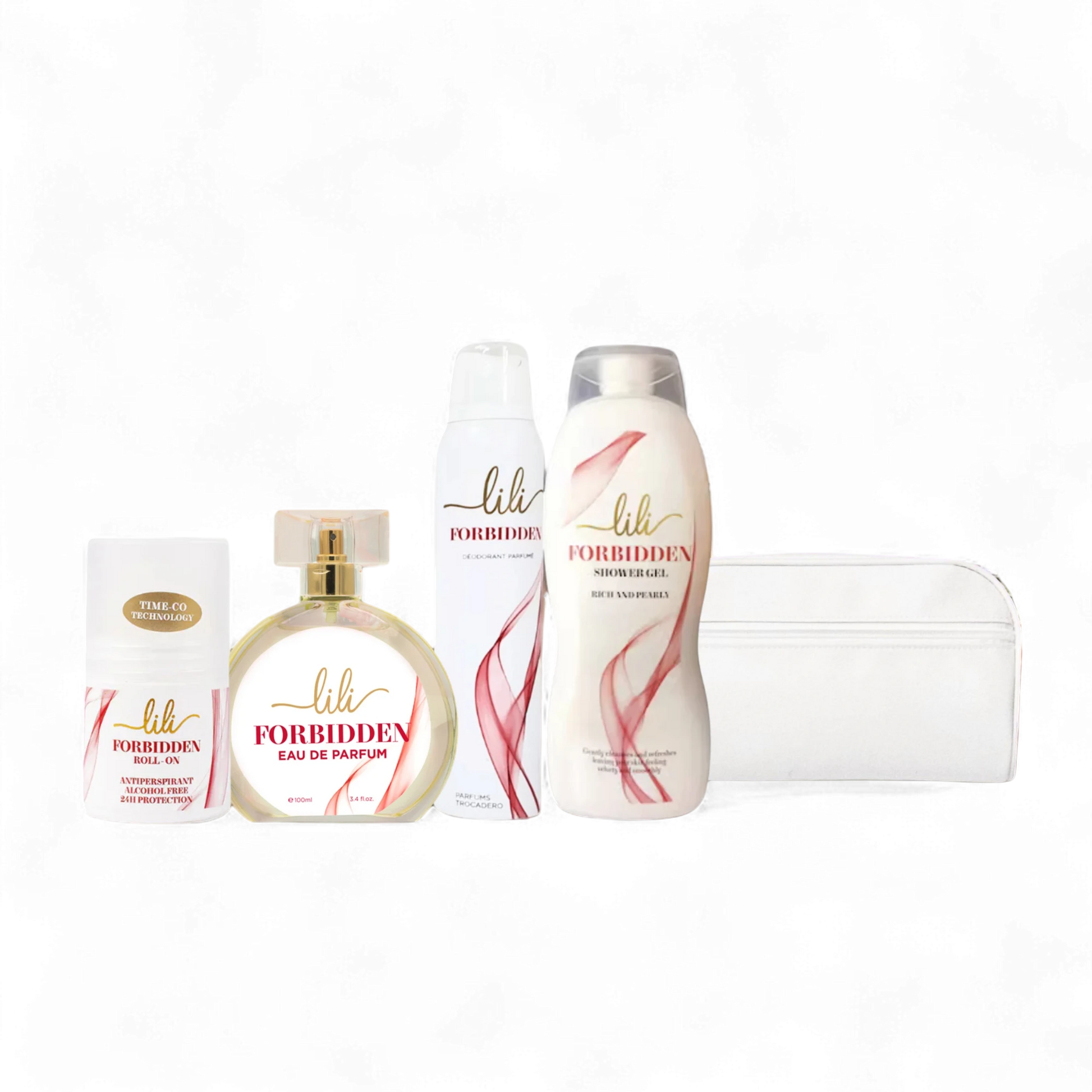 Delve into the luxurious world of self-care with Lili Forbidden's Pour Femme gift set, designed to enhance your daily routine.